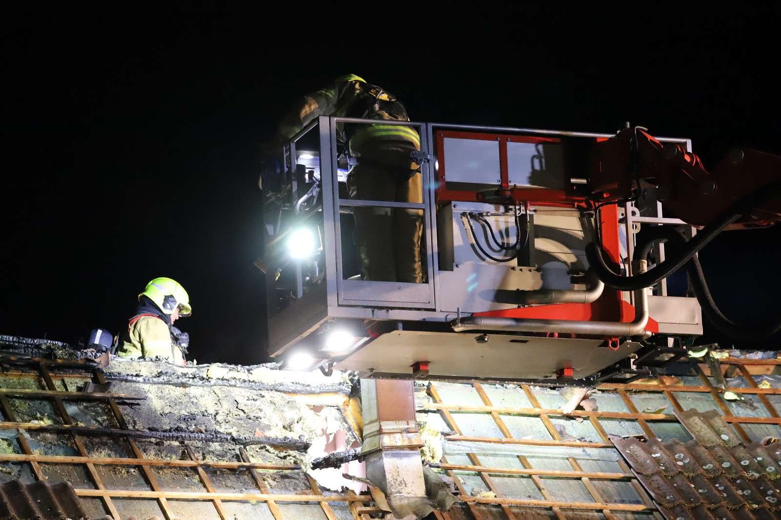 Bij aankomst van de hulpdiensten bleek er rook uit het dak van een woning bij een boerderij te komen. De brandweer schaalde al snel op naar middelbrand om voldoende materieel en personeel ter plaatse te krijgen. Ook werd een hoogwerker ingezet om de brand van bovenaf te bestrijden.